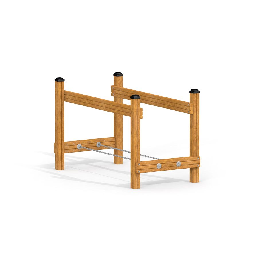 Kettenbrücke II isch es attraktivs und sichers Element für Spielplatz und Bewegigsraum, wo Kinds d’Möglichkeit biete, ihre Koordination und Balance z’trainiere. Die Brugg verbindet Spiel und Bewegung uf e spannende und natürligi Art.