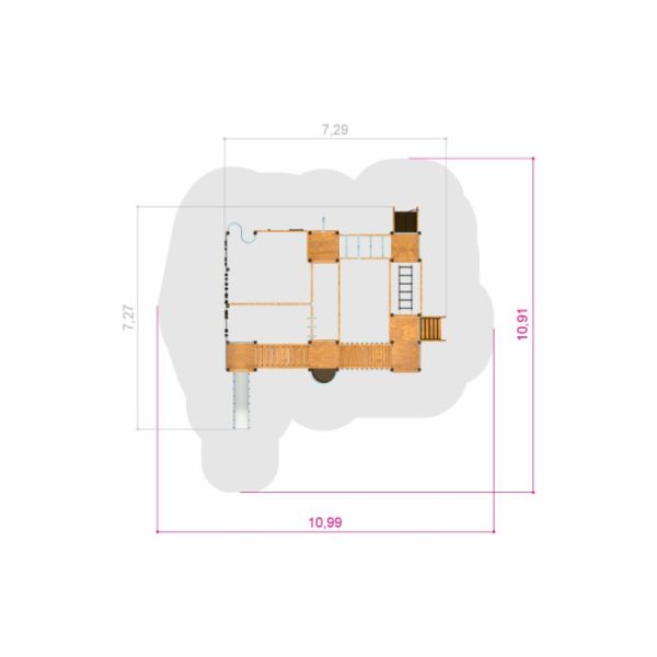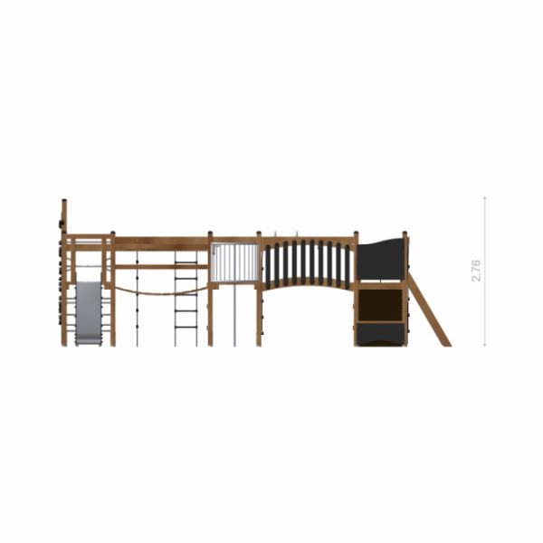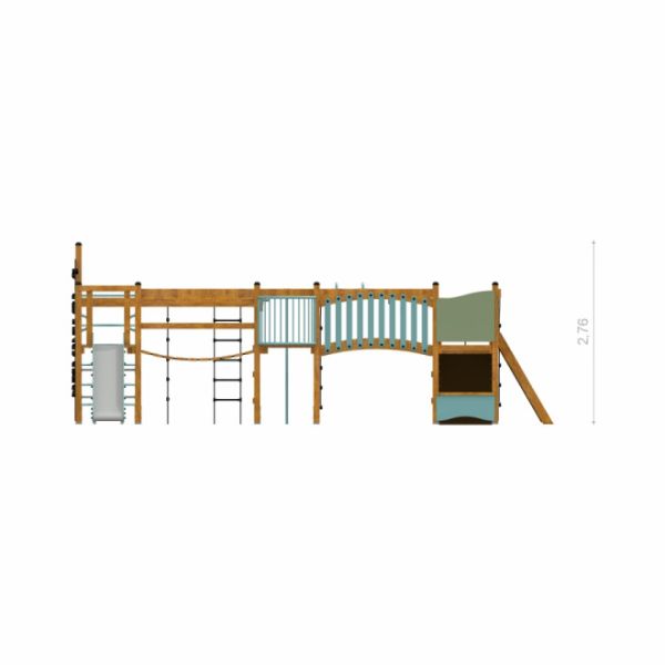 Die Spielanlage isch us hochwertigem Lärcheholz, Edelstahl und verzinktem Stahl gfertigt, was für langfriistigi Stabilität und Witterigsbeständigkeit sorgt. Zäme mit recyceltem HDPE, verstärkte und weiche PP-Seile, sowie rutschfeste, wasserdichte Sperrholzplätt stöh die Materiale für sicheri und langlebigi Nutzung. Die Kombination vo robustem Holz und widerstandsfähige Kunststoffelemente garantiert e optimale Balance zwüsche natürlechem Design und moderner Funktionalität.