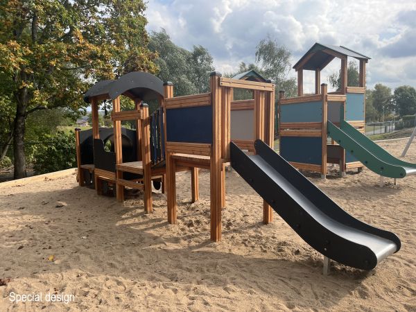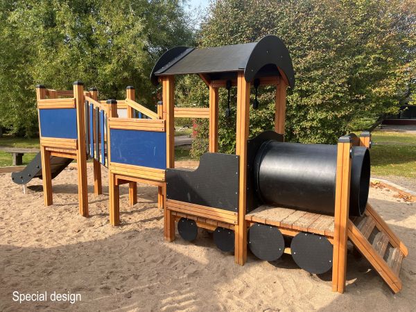 Lokomotive Spielhaus mit Kletterturm und Rutsche – Abenteuer uf Schiene und Turn
