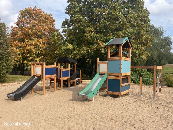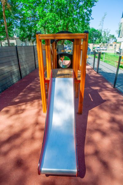 Das Lokomotive Spielhaus fördert d'Bewegig und Kreativität vo Chind durch Klettern, Rutsche und Rollenspiel. Perfekt für Spielplatz, KiTa oder private Gärte, schafft es e lebendige und attraktive Zone, wo Kinder ihre motorische Fähigkeite und soziale Kompetenze spielerisch stärkt.