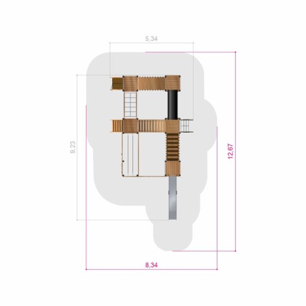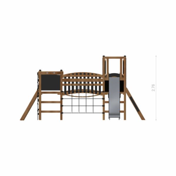 Unsere Holzkonstruktion kommt aus der Produktlinie Classic Nature und ist eine echte Rarität. Wie es sich für eine echte Basis gehört, besitzt „Piraten Basis Natur“ viele Seitengänge, Balkons und Quasi-Korridore. Des Weiteren finden die Kleinen hier vielfältige Spielattraktionen: Holzbrücke, Hängebrücke, Kletterwand und Kletternetz, schräge Kletterwand mit Seil, Holzleiter, horizontale und senkrechte Leiter, Schwebebalken, Tunnel und die unerlässliche Rutsche, dank der man schnell aus dem Abenteuerlabyrinth flüchten kann.