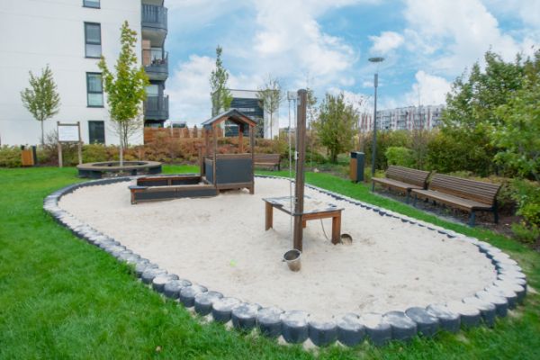 Der Spielplatz wurde mit modernen, umweltfreundlichen Geräten aus einer Linie entworfen und ausgestattet, die mit dem renommierten Nordic Swan Ecolabel zertifiziert ist. Dieses skandinavische Zertifikat, eines der bekann...