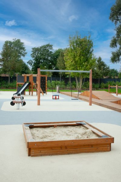 Der Spielplatz wurde mit modernen, umweltfreundlichen Geräten aus einer Linie entworfen und ausgestattet, die mit dem renommierten Nordic Swan Ecolabel zertifiziert ist. Dieses skandinavische Zertifikat, eines der bekann...