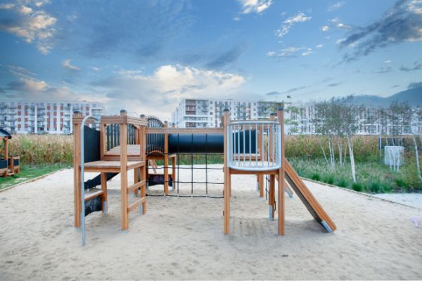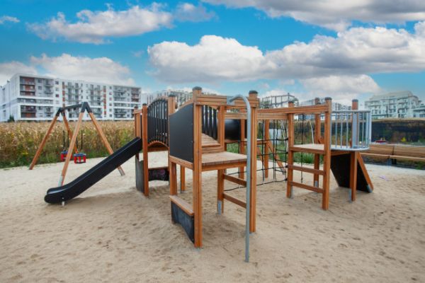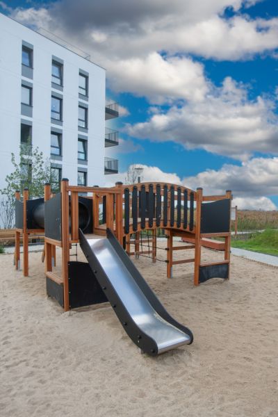 Der Spielplatz wurde mit modernen, umweltfreundlichen Geräten aus einer Linie entworfen und ausgestattet, die mit dem renommierten Nordic Swan Ecolabel zertifiziert ist. Dieses skandinavische Zertifikat, eines der bekann...