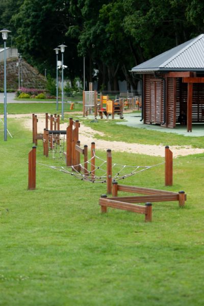 Dieser Parcours bietet vielfältige Bewegungsmöglichkeiten, die Koordination, Gleichgewicht und Kraft fördern. Er ist perfekt geeignet für öffentliche Spielplätze und Erholungszonen, wo Kinder spielerisch ihre motorischen Fähigkeiten verbessern können.