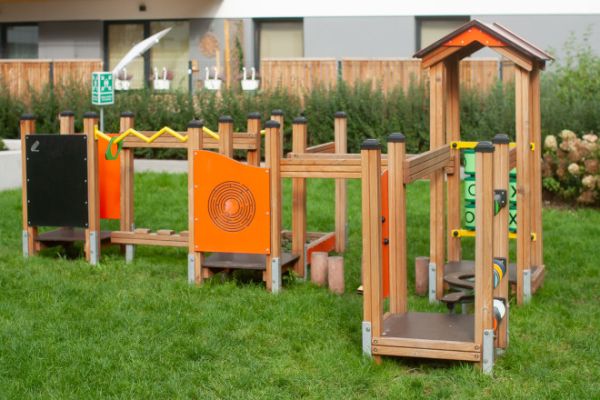 Der Spielplatz wurde mit modernen, umweltfreundlichen Geräten aus einer Linie entworfen und ausgestattet, die mit dem renommierten Nordic Swan Ecolabel zertifiziert ist. Dieses skandinavische Zertifikat, eines der bekann...