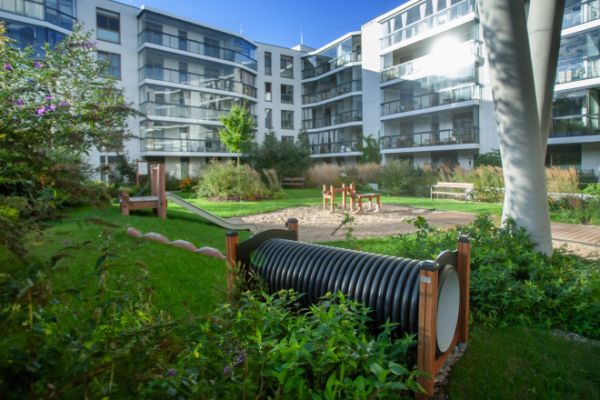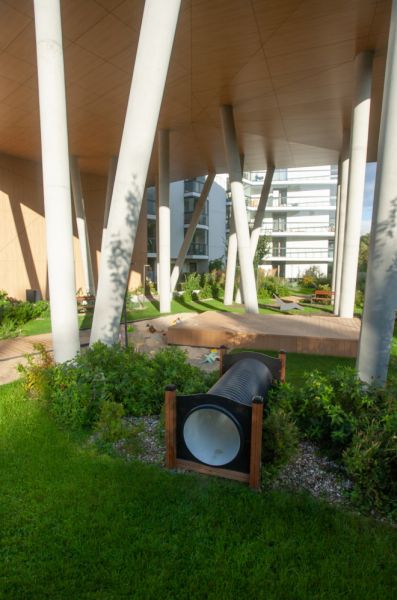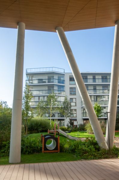 Der Spielplatz wurde mit modernen, umweltfreundlichen Geräten aus einer Linie entworfen und ausgestattet, die mit dem renommierten Nordic Swan Ecolabel zertifiziert ist. Dieses skandinavische Zertifikat, eines der bekann...