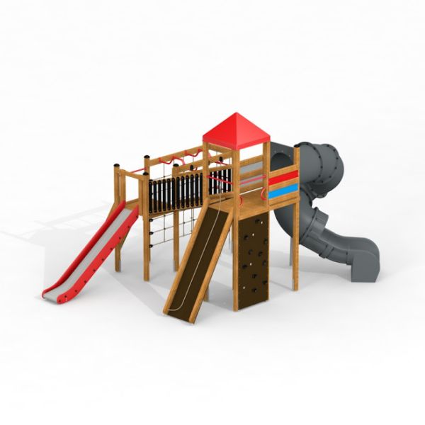 Twister II isch e vielseitigi und spannend Spielplatzanlage, wo Kinder zum Klettern, Rutsche und entdecke iihregmässig lädt. Mit sini farbige Details und robusti Gestaltung bringt er Schwung und Freude i jede Spielplatzumgebig.