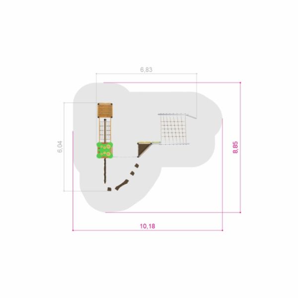 Dieses Klettergerüst ist ideal für öffentliche Spielplätze, Kindergärten oder private Gartenanlagen. Es fördert soziale Interaktion und körperliche Aktivität und ist eine attraktive Ergänzung für jede Freizeitanlage. Kinder werden durch die vielfältigen Klettermöglichkeiten und die abwechslungsreiche Gestaltung zu langanhaltendem Spiel und Bewegung motiviert.